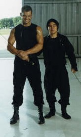 David me resaltó también que solo sintió un poco de temor cuando lo hicieron enfrentar con el "pequeño" Martin (el musculoso de la foto), pero pudo sobrellevarlo porque solo en apariencia le resultó un hombre malo. Tanto Martin como todos los del elenco le parecieron excelentes personas y se sintió muy cómodo en todo momento.