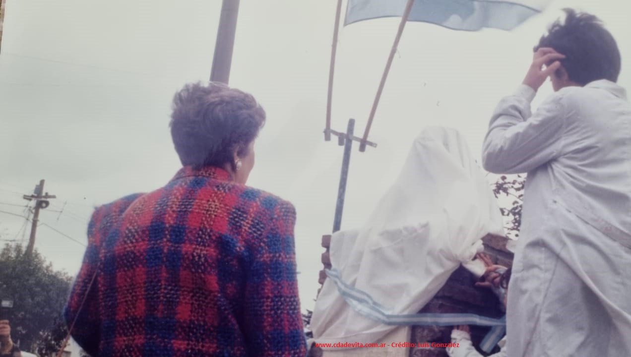En el lugar se encotraba un refugio de colectivo, referencia para los que viajando debían concurrir al Club Almafuerte, que con los años se fue deteriorando y finalmente fue demolido. Los fondos para la confección de la plazoleta, fueron aportados por los vecinos frentistas, comerciantes y el Club Almafuerte. La delegacion municipal con el ex delegado Umberto Geangrande a la cabeza, puso la mano de obra. La ornamentación con plantas y flores fue a cargo del vivero ROBIN, quien continuo manteniendolo durante mucho tiempo. A pesar de ser un dia laboral, se hacercaron muchos vecinos y se conto con la presencia de abanderados de muchas escuelas de Ciudad Evita, Aldo Bonzi, Villa Madero y Villa Celina.