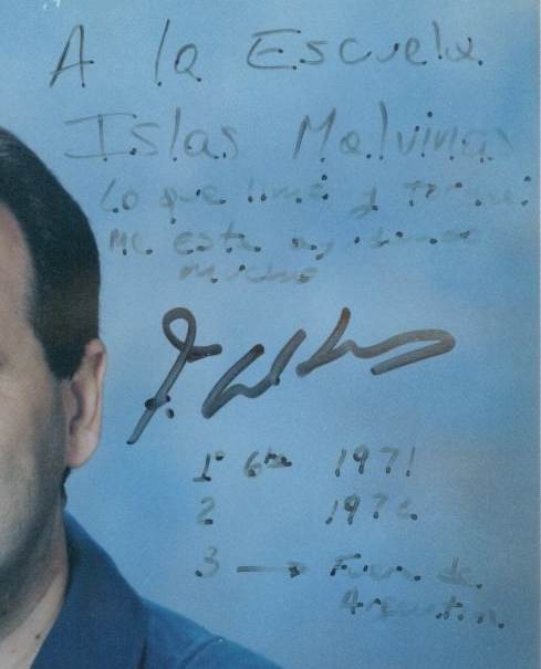 que se encuentra en el Colegio Malvinas con su autógrafo.